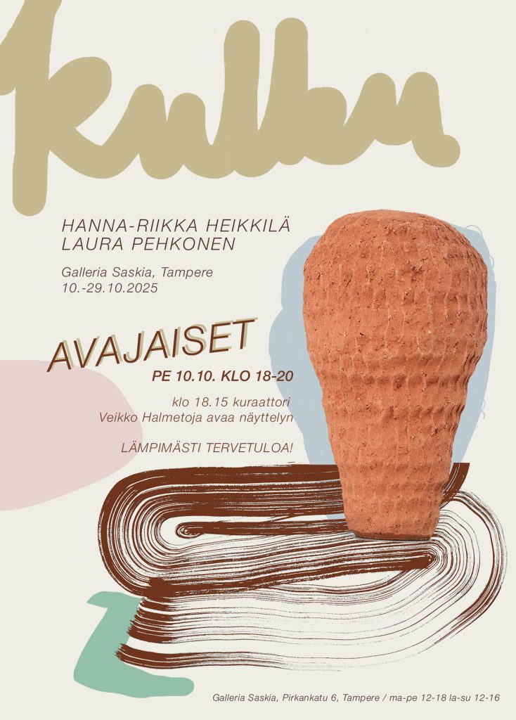 Hanna-Riikka Heikkilä (s. 1979) ja Laura Pehkonen (s. 1985) ovat kuvataiteilijoita, jotka uskaltavat rikkoa nykytaiteen ja designin rajoja ja astua taiteilijoina rohkeasti muodon vietäviksi. Heidän ensimmäinen yhteisnäyttelynsä on esillä Galleria Saskiassa Tampereella. Heikkilä ja Pehkonen ovat työskennelleet näyttelyä varten itsenäisesti, mutta teokset on ripustettu toisiinsa lomittuvaksi kokonaisuudeksi. Käsiala ja materiaalivalinnat auttavat erottamaan teokset ja niiden tekijät toisistaan, silti näyttelyä voi katsoa kokonaisena maailmana, retkenä visuaaliseen todellisuuteen, jossa muoto ja väri kulkevat käsi kädessä materiaalista riippumatta.